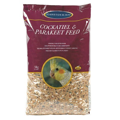 Johnston & Jeff Parakeet & Cockatiel Mix is a specially selected feed for optimum health and condition in smaller parrot species nutritionally correct additive free and cleaned to 99.9% purity. Rich in digestible proteins and oils. Ingredients: Canary Seed Sunflower Seed Safflowerseed White & Red Millet Hempseed Groats Buckwheat Milo Paddy Rice Peanuts.