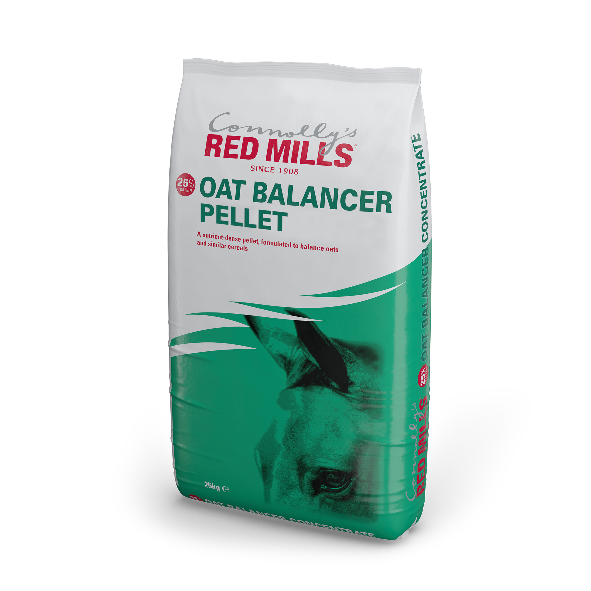 Red Mills Oat Balancer Pellets. Specially formulated oat balancer in a pellet form which is dust free and highly digestible. Providing a balanced traditional style diet when mixed with oats or similar cereals. Meeting the higher protein vitamin and minerals needs of breeding stock when mixed with oats or similar cereals. Youngstock maintained on cereals that require a balanced diet to support growth and development. Racehorses trained on oats or similar cereals that require a balanced diet. Topping-up a low concentrate diet to meet micronutrient requirements.