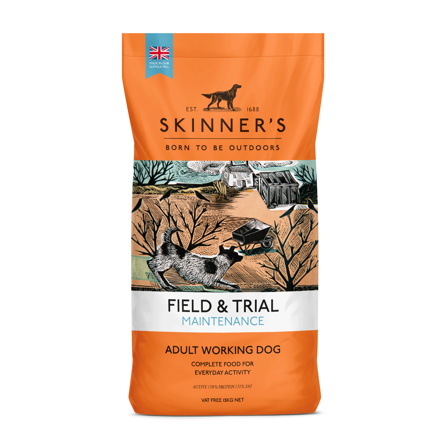 Skinners Field & Trial Maintenance is a complete dog food specially developed and formulated to support dogs with a low to moderate activity level. Maintenance is also suitable for dogs who have a reduced activity level or who are prone to weight gain on some of our other working dog formulations and dogs who might be resting or recovering out of season and so do not require an energy dense feed. This can help to reduce energy intake and help prevent excess weight gain. Maintenance has been formulated with a protein level (18%) and fat level (11%) to support normal day-to-day activity and provides everything your dog requires to remain happy and healthy.