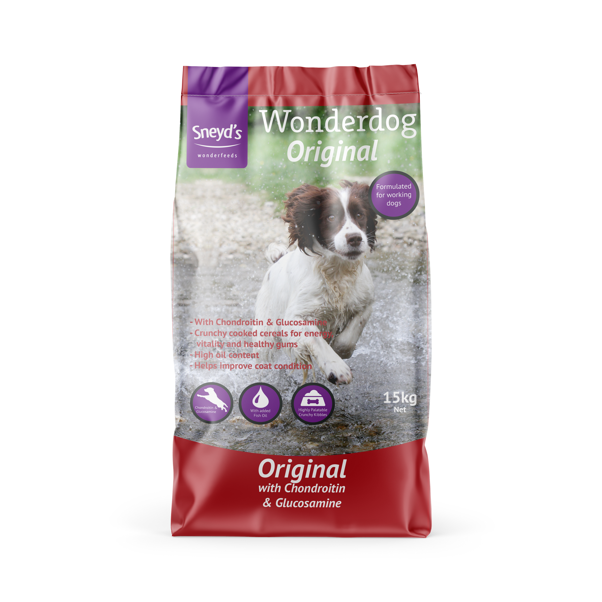Sneyds Wonderdog Original is a complete diet for working dogs. With Cod Liver Oil for a healthy coat bright eyes firm bones and strong teeth.